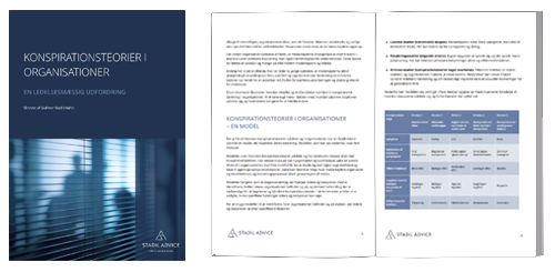 Dette har ført til e-bogen “Konspirationsteorier i organisationer – En ledelsesmæssig udfordring”.